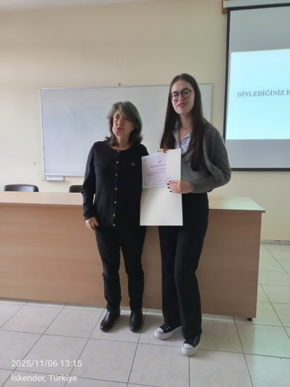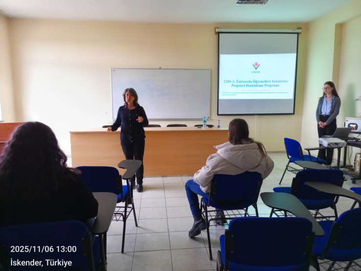 Öğrencimiz Çağla Bekar, 2209-A Üniversite Öğrencileri Araştırma Projeleri Destekleme Programı ile ilgili olarak bir bilgilendirme konuşması vermiştir. Tüm katılımcılara teşekkür ederiz.
